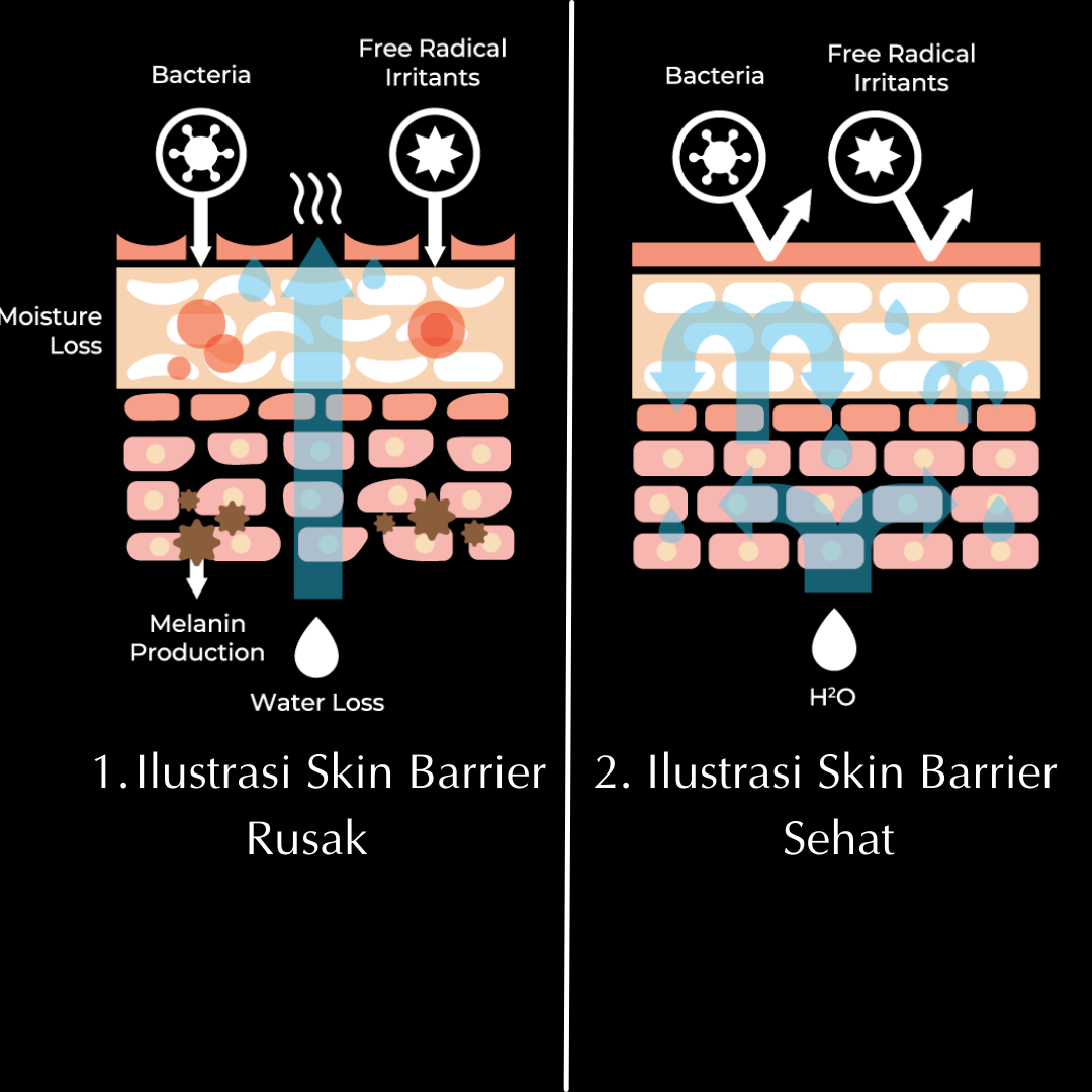 Skin Barrier merupakan lapisan paling luar pada kulit yang mengandung ceramide, kolesterol, dan asam lemak. Bisa dibilang bahwa skin barrier adalah garis pertahanan terdepan